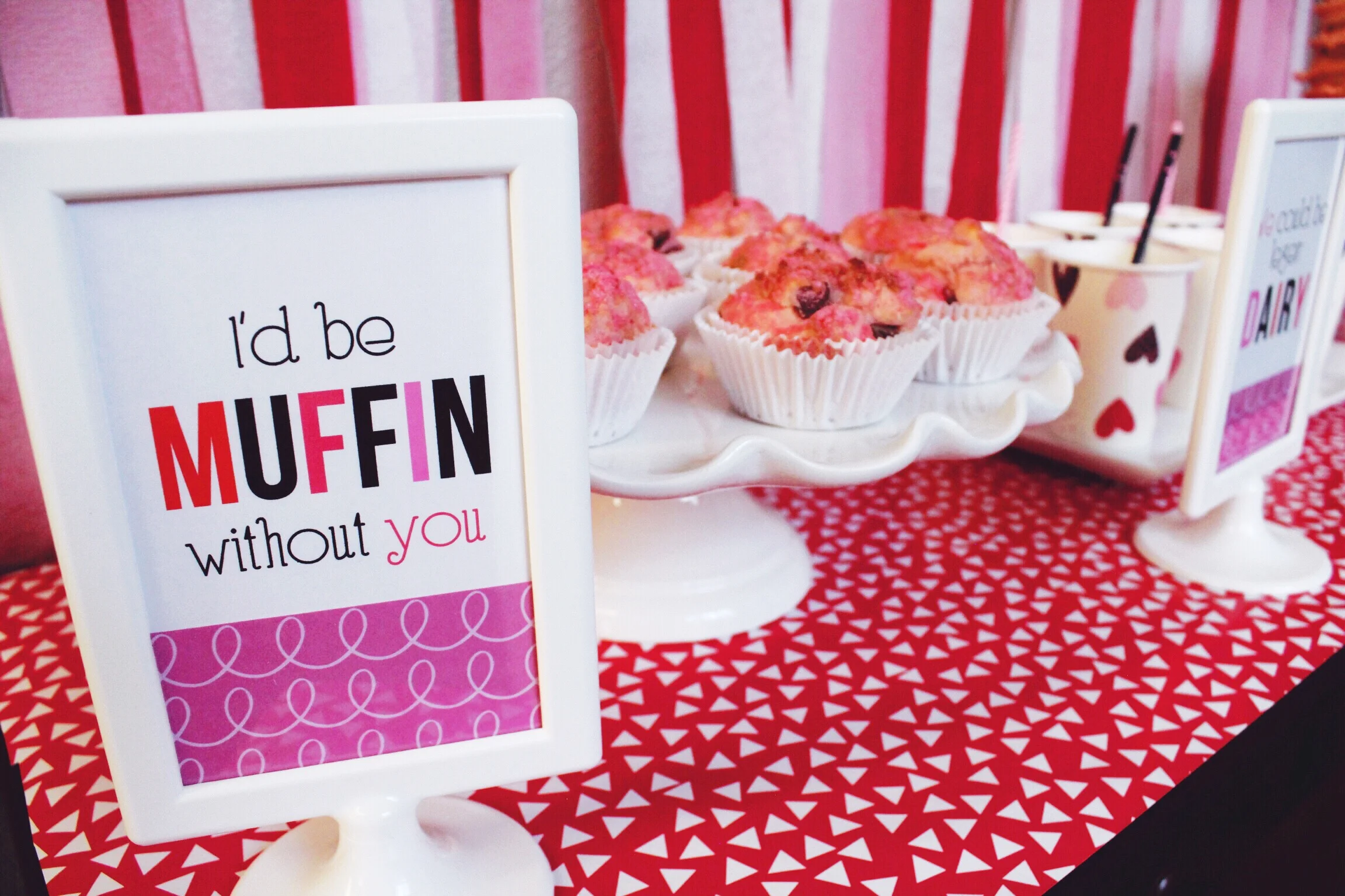 Because Valentine's Day falls on a Wednesday this year, we're kicking off the day with an ultra-festive pink, white, and red Valentine's breakfast, but let's face it, breakfast is good anytime of day so if you're celebrating in the evening, breakfast it up! Breakfast foods and puns go hand in hand so scroll on to see how parfaits, muffins, and milk make for the best valentines <3