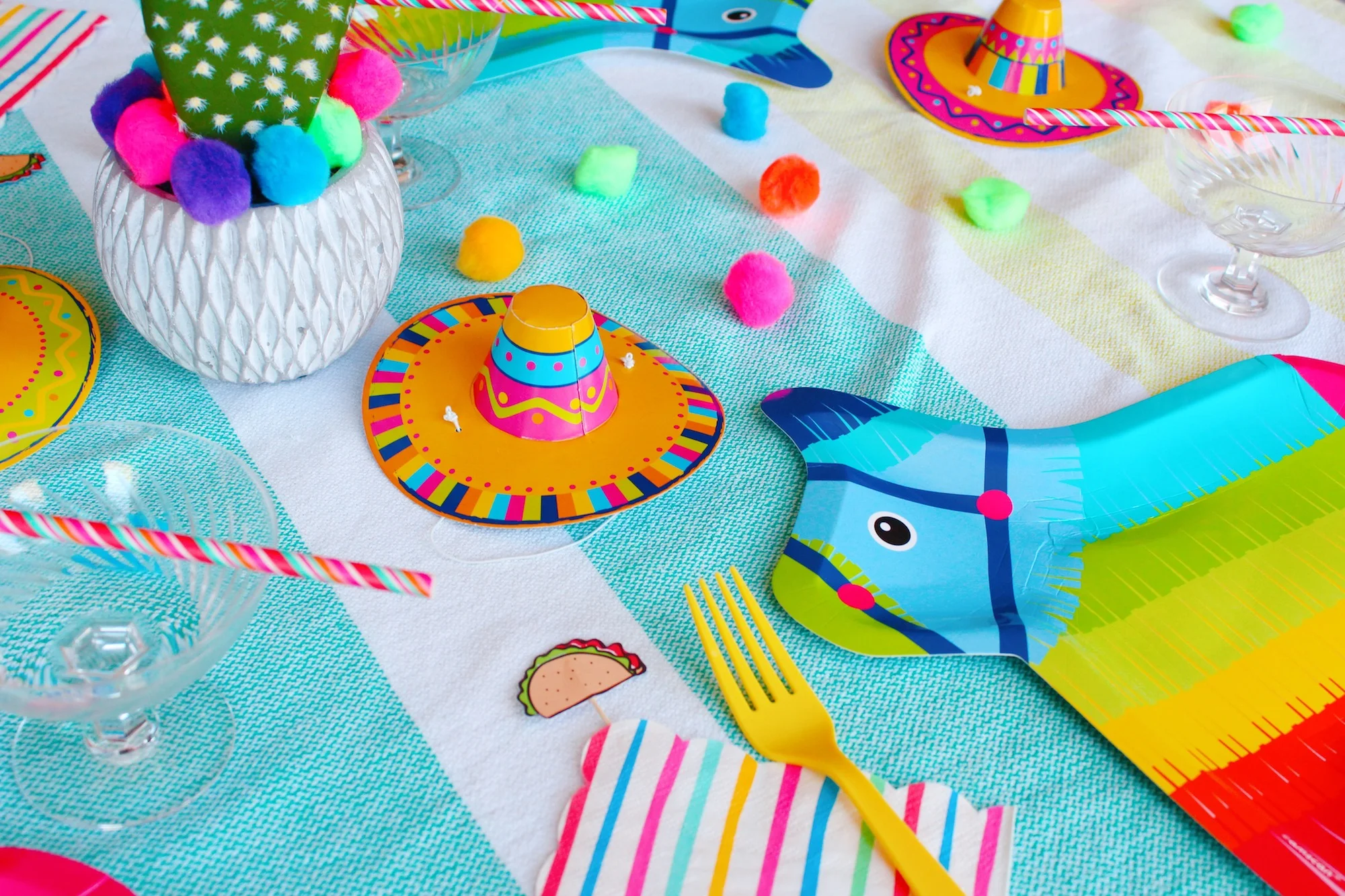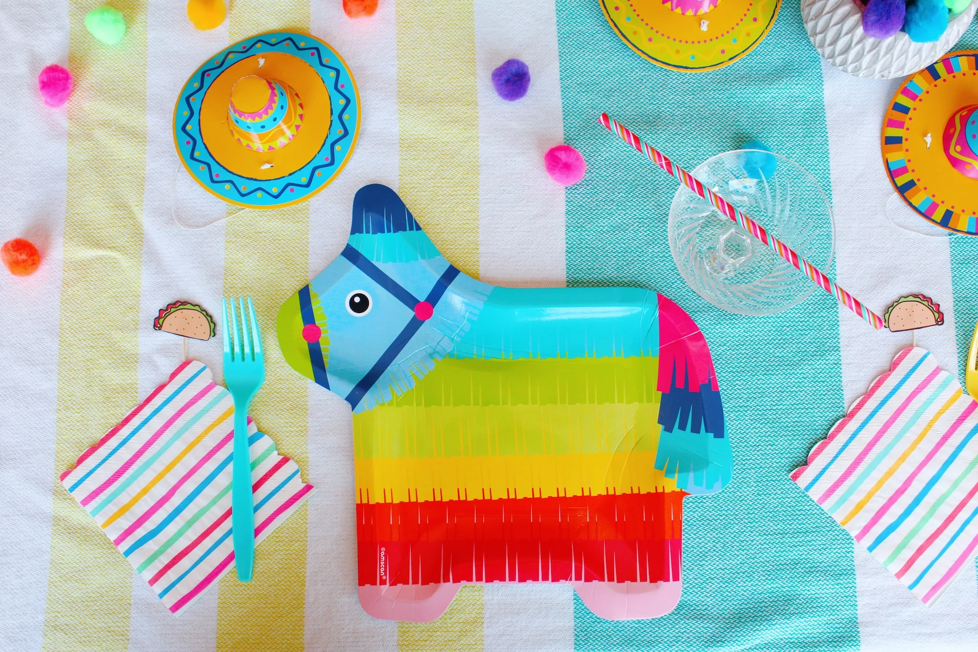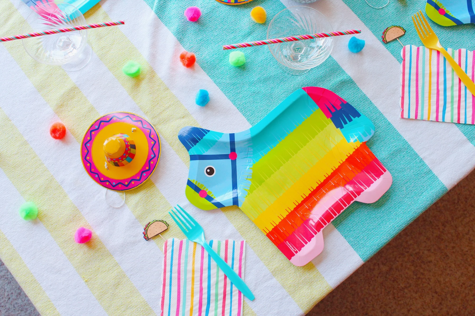 Ah, Cinco de Mayo, the party that unlocks the door of all summer parties to come! It’s finally time for bright colors, cool drinks, pool days, and partying until long after the sun has gone down. This year’s Cinco de Mayo fiesta features THE CUTEST piñata plates, pom poms in place of confetti, and a whole slew of patterns and colors! Scroll on for more details so you can throw a fiesta of your own!