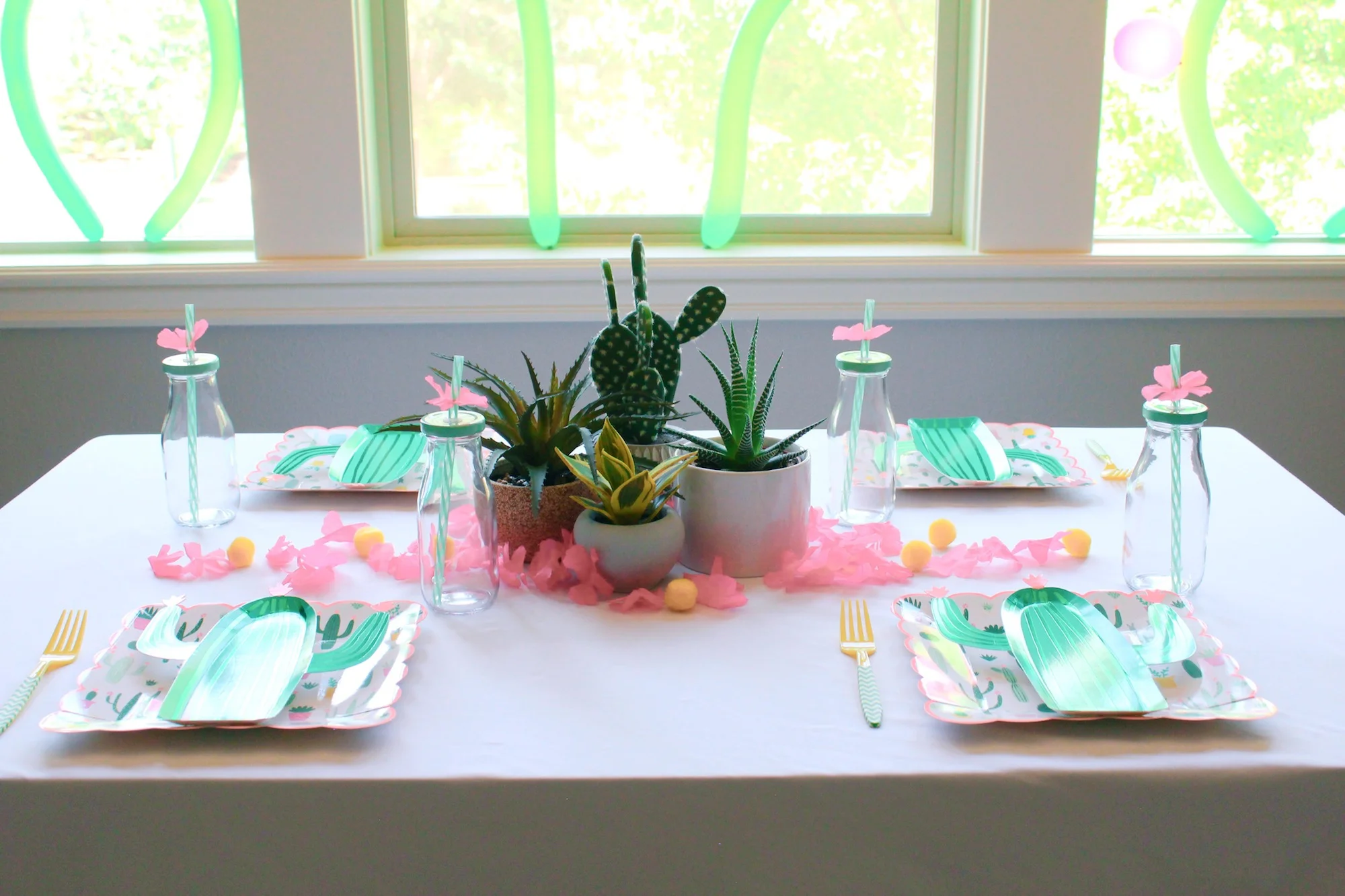 Embrace the summer heat with all things cactus! It’s easy to set the desert scene with cactus-themed tableware, some plants from around the house, and a DIY cactus balloon backdrop! Scroll on for all the details.